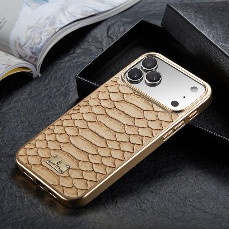 Funda de PU galvanizada con textura de pitón Fierre Shann para iPhone 17 Pro Max (marrón)