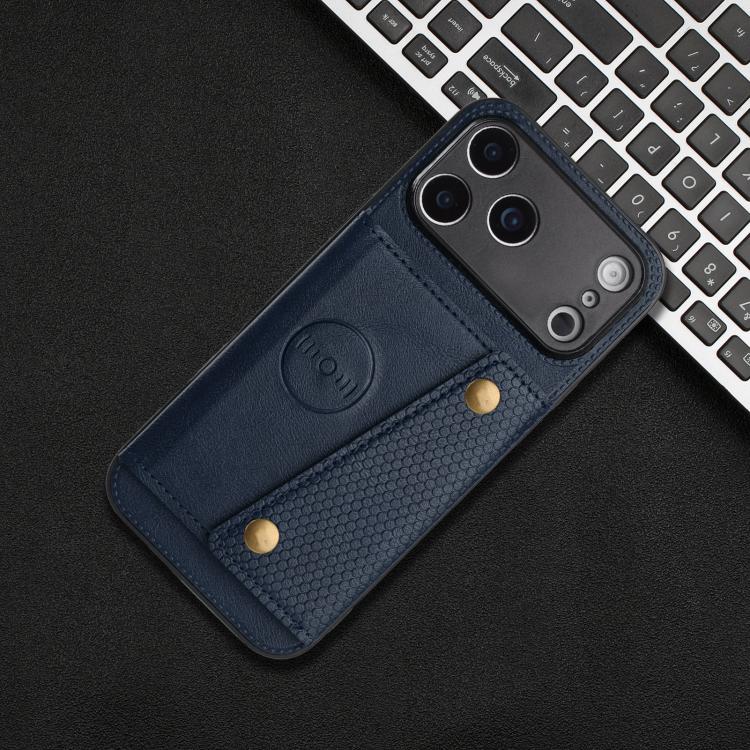 Funda magnética con doble hebilla y ranuras para tarjetas para iPhone 17 Pro Max (azul)