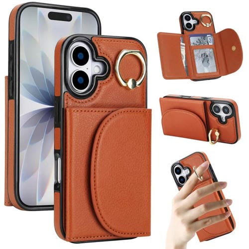Funda para iPhone 17 con tarjetero y anillo, tacto suave (marrón)