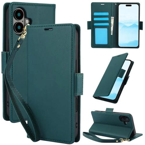 Funda de cuero antirrobo RFID con hebilla lateral para iPhone 17 (verde)