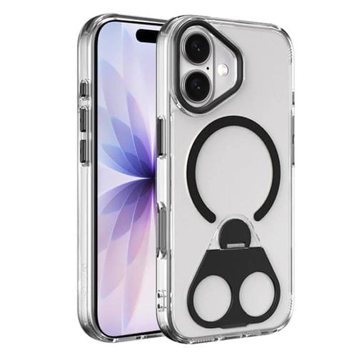 Funda de TPU MagSafe transparente para iPhone 17 con soporte giratorio de 360 grados (negra)