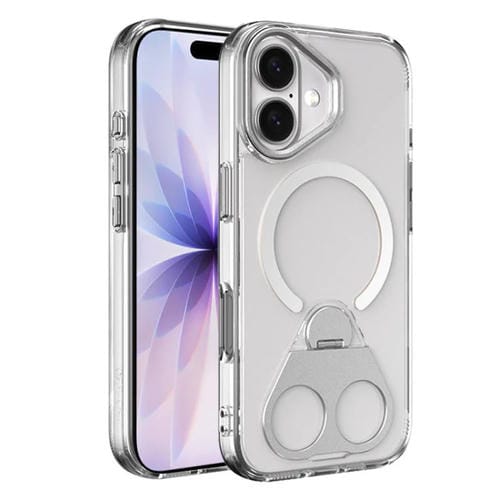 Funda de TPU MagSafe transparente para iPhone 17 con soporte giratorio de 360 grados (plateada)