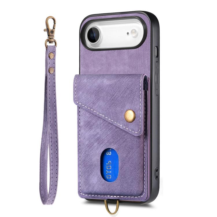 Funda de cuero plegable con correa para iPhone Air, estilo retro, con tarjetero (morado)