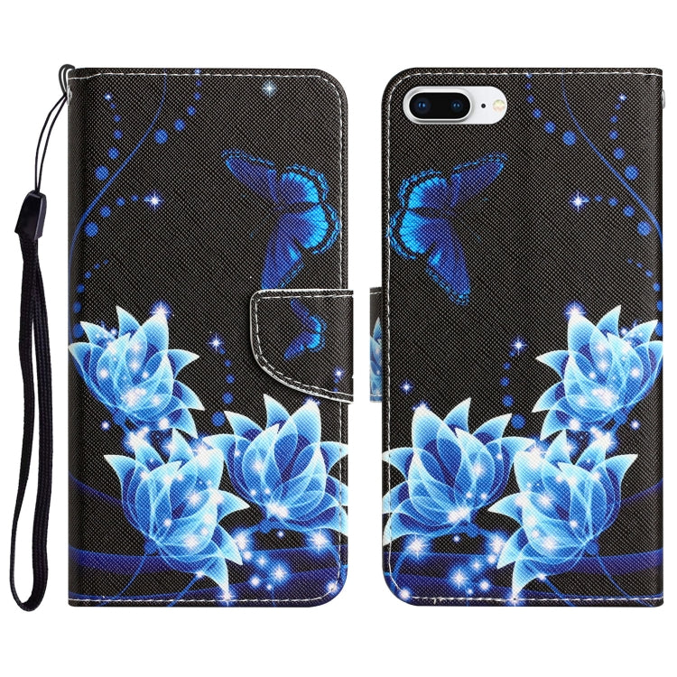 Estuche de Teléfono Cuero iPhone 7 Plus 8 Plus Dibujo Coloreado Mariposa Azul