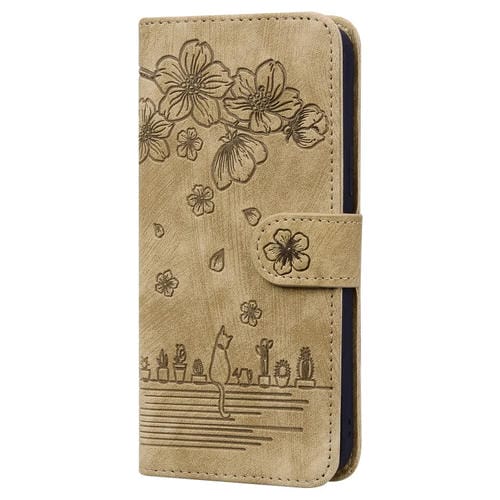 Estuche para iPhone 12 Mini Cartoon Sakura Cat de Cuero en Relieve (Marrón)