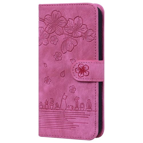 Estuche para iPhone 12 Mini Cartoon Sakura Cat Cuero En Relieve (Rose Red)