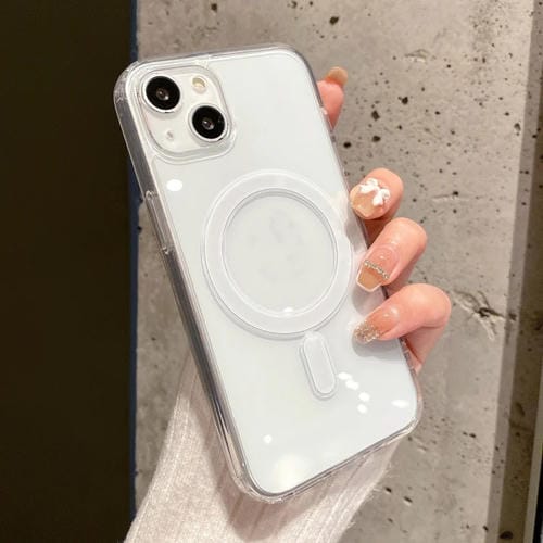Estuche para teléfono 2 en 1 iPhone 14 magnético Transparente con marco colorido (Transparente)