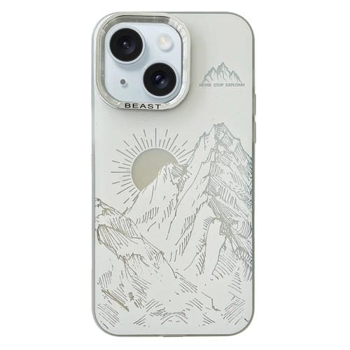 Estuche para Teléfono 2 En 1 iPhone 15 Marco de Galvanoplastia Aurora (Montañas Nevadas Negras)