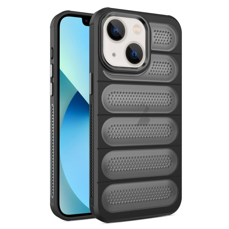 Caja de teléfono para iPhone 13 Malla translúcida con armadura de enfriamiento (Negro)