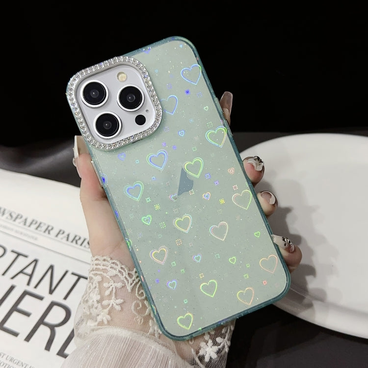 Caja de teléfono para iPhone 14 Love Pattern Diamond Lens Frame Imd Acrílico (Verde)
