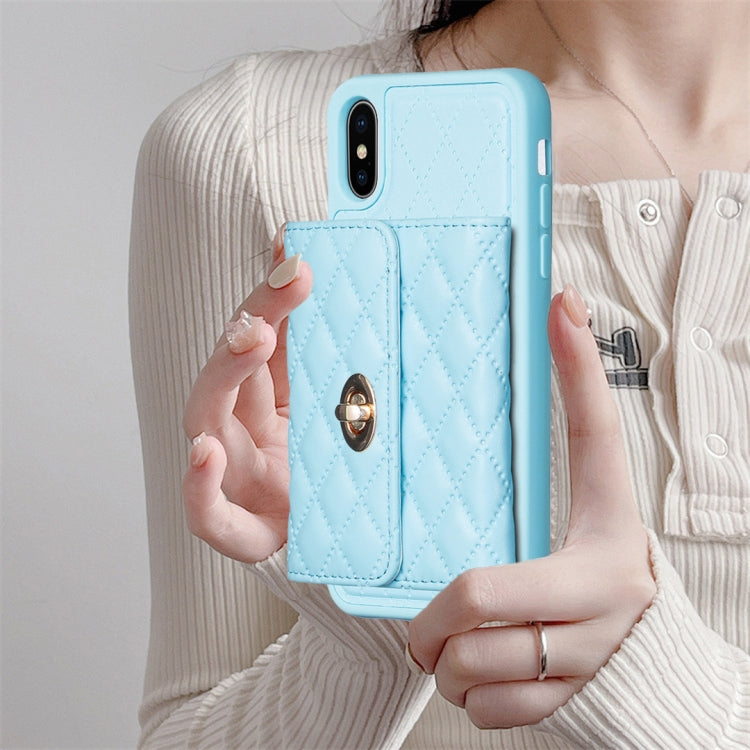 Caja de Teléfono para iPhone Xr Rombal Cuero con Hebilla de Metal Vertical (Azul)