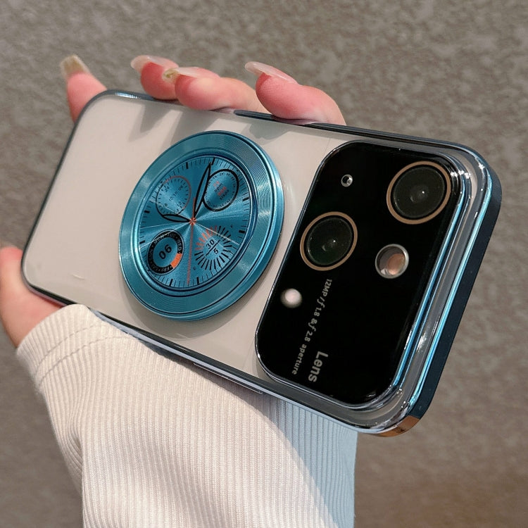 Caja de teléfono para PC para iPhone 13 Pro Max con soporte de ventana grande galvanizada (Azul)