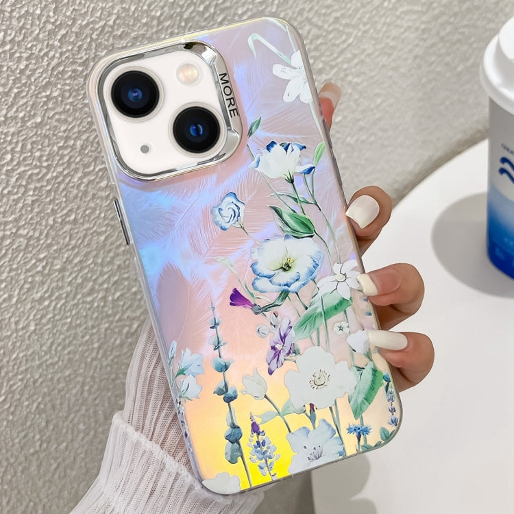 Caja de teléfono TPU para iPhone 13 con textura de flor láser de galvanoplastia (Myosotis Ah2)