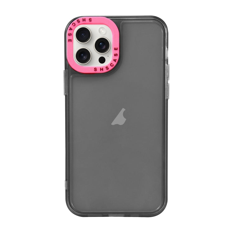 Caja de teléfono TPU para iPhone 15 Pro Max con marco de Lente contraste (Negro + Rojo Rosa)