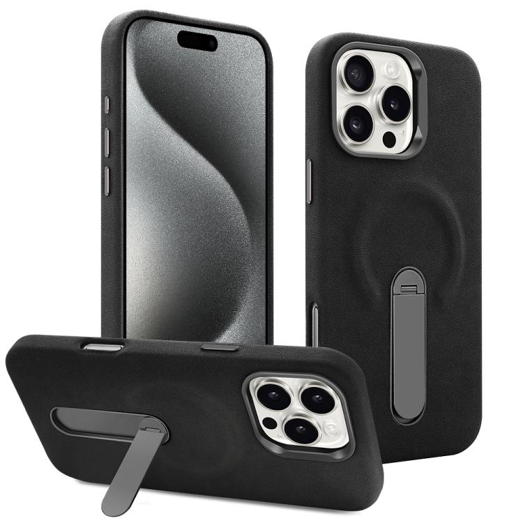 VIETAO - Funda de piel sintética MagSafe de ante con soporte para iPhone 15 Pro Max (negra)