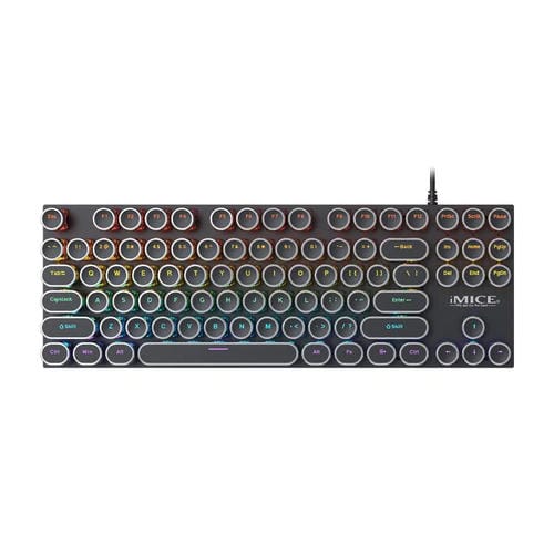 Teclado mecánico iMICE GK-800 de 87 teclas con cable USB y teclas redondas RGB (negro)