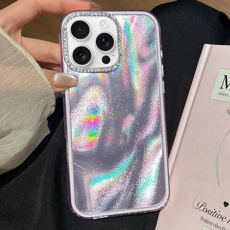 Funda 3 en 1 con diseño de arena movediza y marco de diamante para iPhone 16 Pro (morado)
