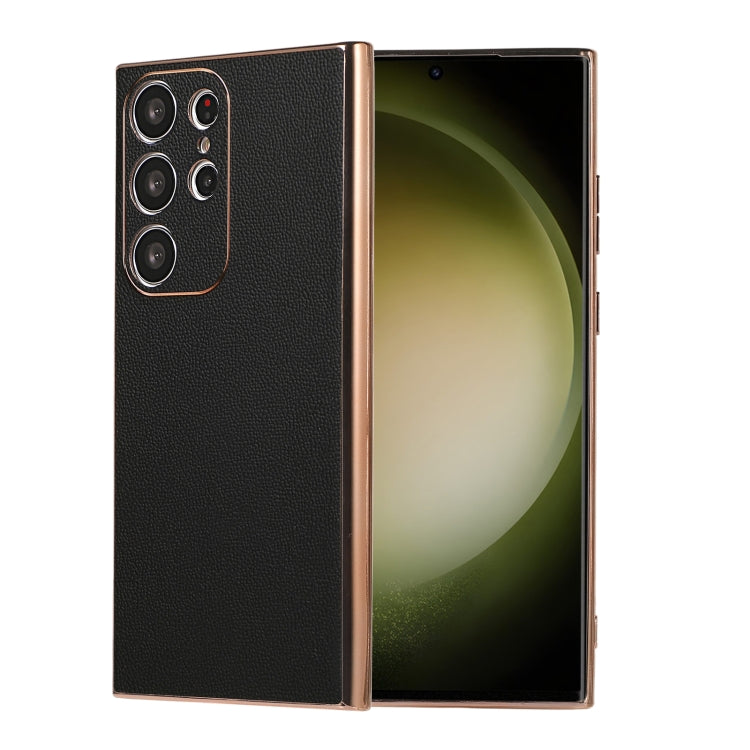 Para Samsung Galaxy S23 Ultra 5G de cuero genuino Xiaoya Series Nano Plating Phone Case (Negro)