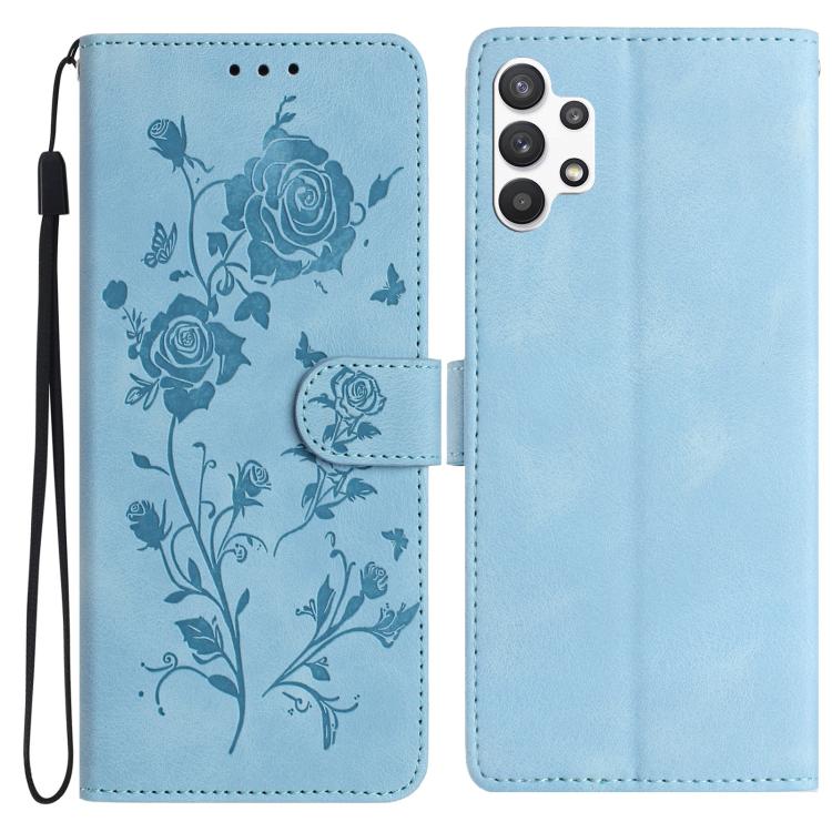 Funda de piel con estampado floral en relieve para Samsung Galaxy A32 5G (azul cielo)