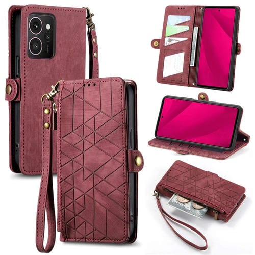 Funda de Cuero para Teléfono HMD Skyline con Hebilla Lateral y Cremallera Geométrica (Rojo)