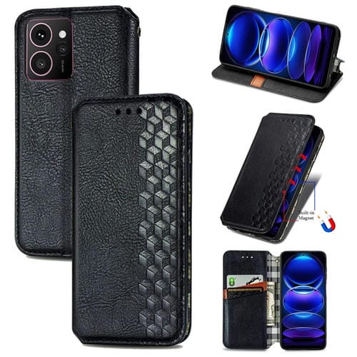 Funda de Cuero Magnética Prensada con Cuadrícula Cúbica para Teléfono HMD Skyline (Negra)