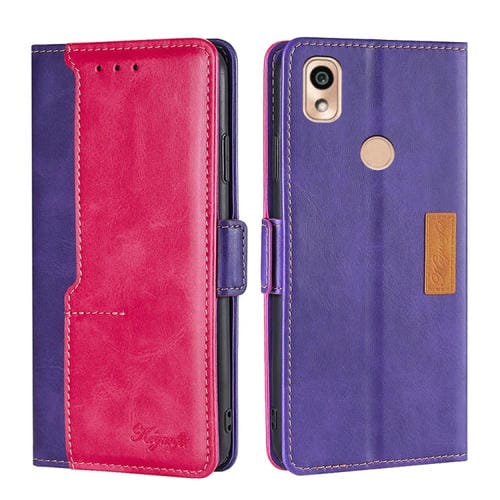 Funda de Cuero con Hebilla Lateral para Kyocera Digno Sx4 5G (Púrpura y Rojo Rosa)