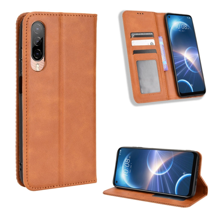 Funda de Cuero con Hebilla Magnética para HTC Desire 22 Pro Textura Retro (Marrón)