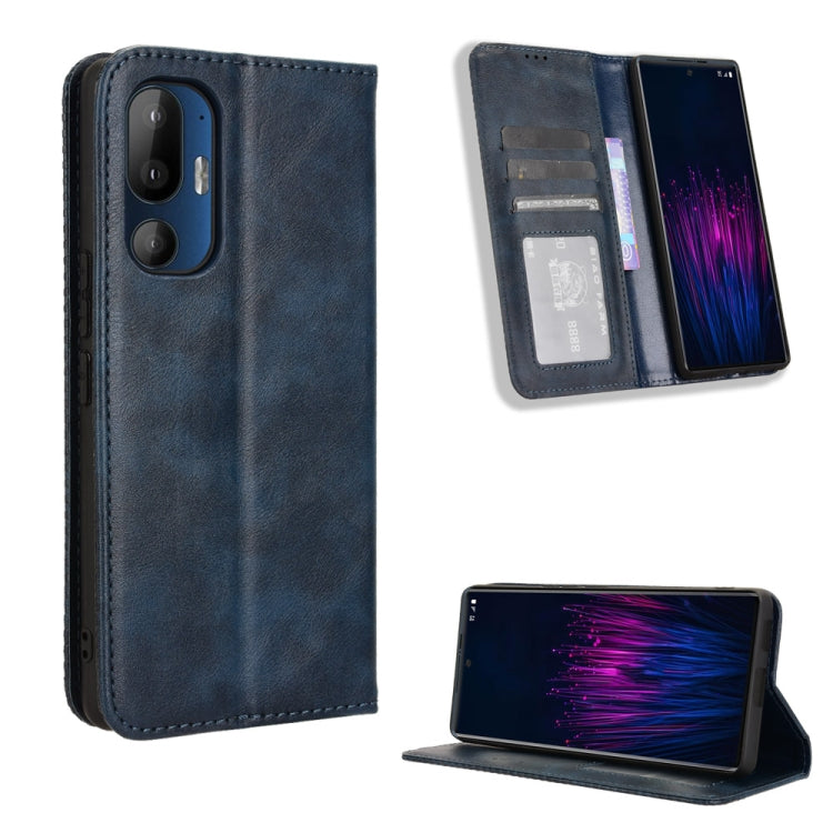 Funda de Cuero con Textura Retro y Hebilla Magnética para HTC U24 Pro (Azul)
