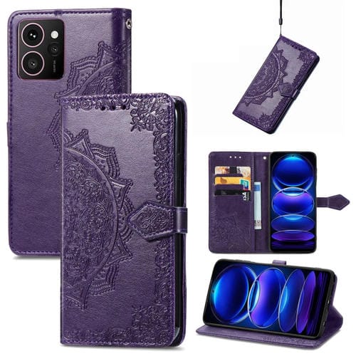 Funda de Cuero con Relieve Flor de Mandala para Teléfono HMD Skyline (Morado)