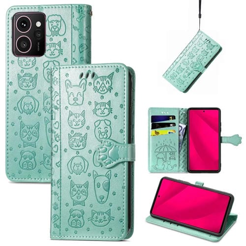 Funda de Cuero con Relieve de Gato y Perro para Teléfono HMD Skyline (Verde)