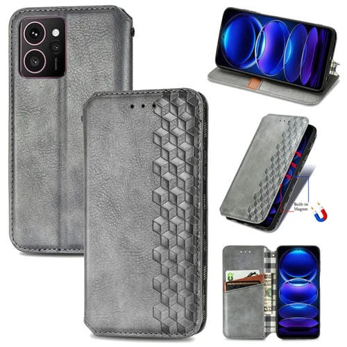 Funda de Cuero Magnética Prensada con Cuadrícula Cúbica para Teléfono HMD Skyline (Gris)