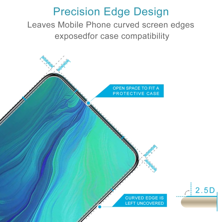 10 PCs 0.26mm 9H 2.5D Película de Vidrio Templado para Oppo Reno A