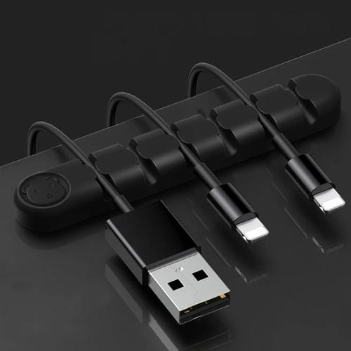 Organizador de Cables Bear Silicone 6 Agujeros para Escritorio Negro (5 PCs)