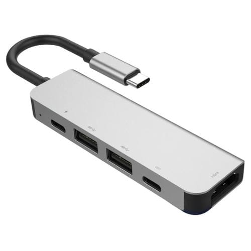Adaptador Hub 5 en 1 USB-C Type-C con HDMI, 2 puertos USB y 2 puertos PD