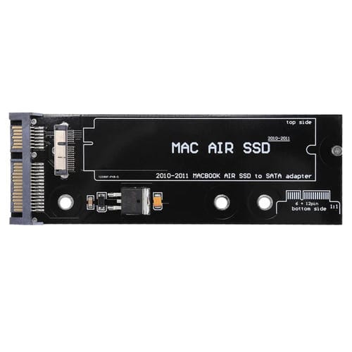 El Adaptador SSD a SATA para MacBook Air modelos A1370 (11.6 pulgadas, 2010-2011) y A1369 (13.3 pulgadas, 2010-2011) es un componente diseñado para facilitar la Conexión entre la unidad de estado sólido (SSD) y la interfaz SATA Original del equipo. Este Adaptador permite la sustitución o actualización del almacenamiento interno, manteniendo la compatibilidad con los sistemas MacBook Air mencionados. Fabricado para garantizar una Conexión estable y eficiente, su función principal es asegurar la transmisión de datos entre la SSD y la Placa Base, permitiendo un rendimiento óptimo del dispositivo. Es una Pieza esencial para usuarios que requieren reemplazar un Adaptador dañado o mejorar la capacidad de almacenamiento de sus MacBook Air de estas generaciones.