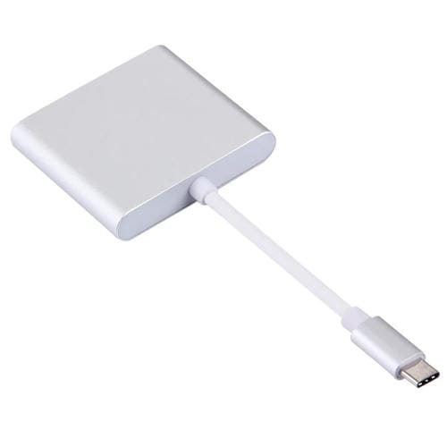 Adaptador USB-C 3.1 Macho a USB-C 3.1 Hembra, HDMI Hembra y USB 3.0 Hembra (Plateado)