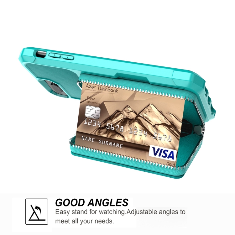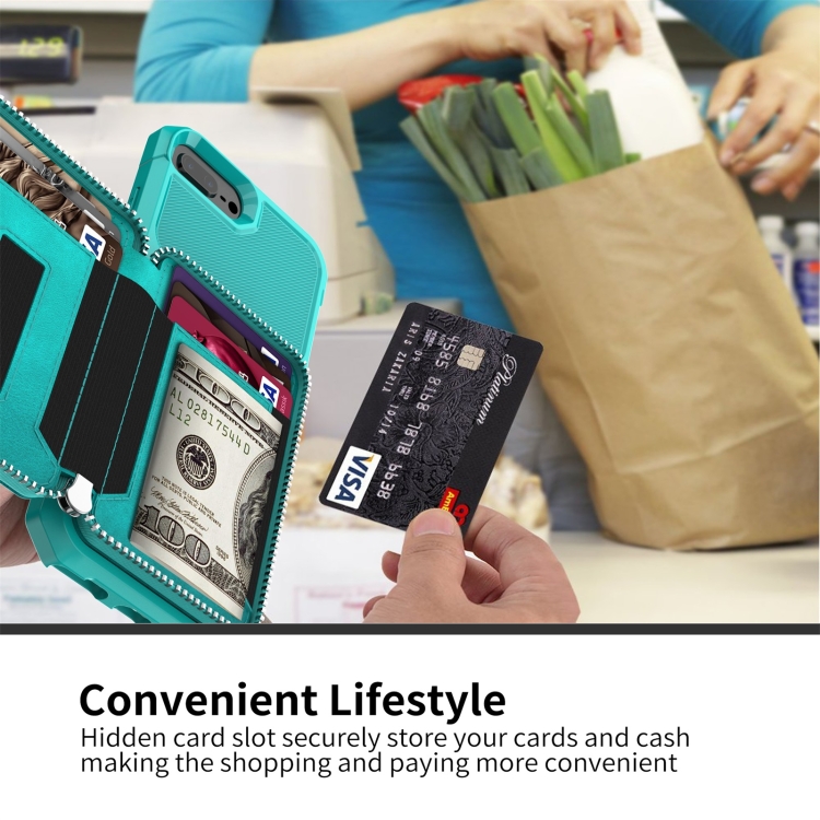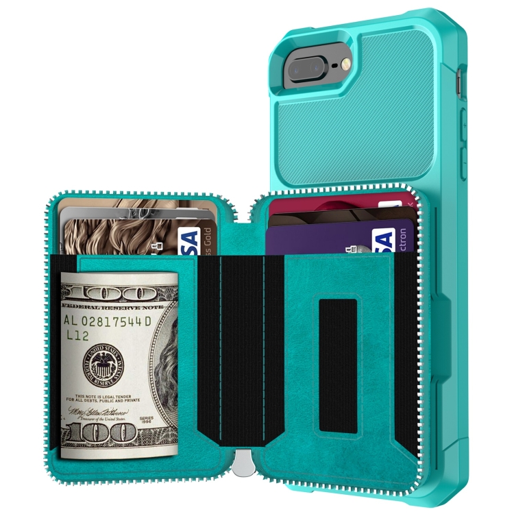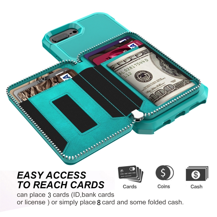 Bolsa de Cartera con Cremallera para iPhone 7 Plus 8 Plus 6 Plus (Green)