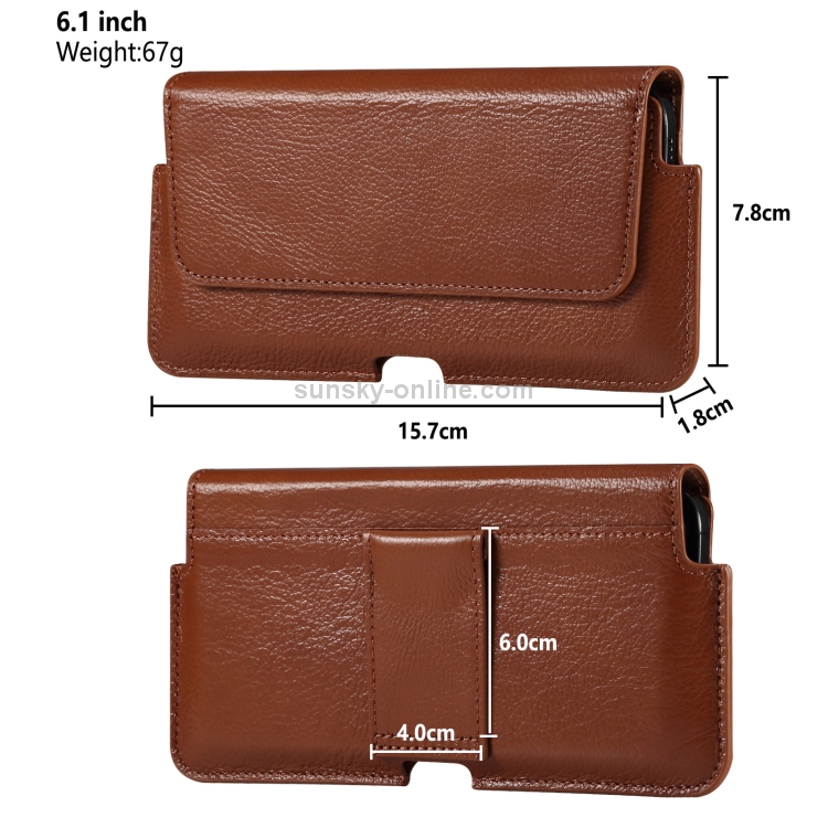 Bolsa de Cintura Cuero Vaca Universal para Teléfonos 6.1 Pulgadas y Menor (Marrón)