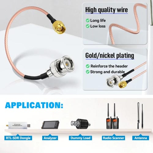 Es ideal para Antenas, escáneres de radio, dongles SDR, analizadores de espectro, osciloscopios y generadores de Señales que utilizan Conectores SMA y BNC.