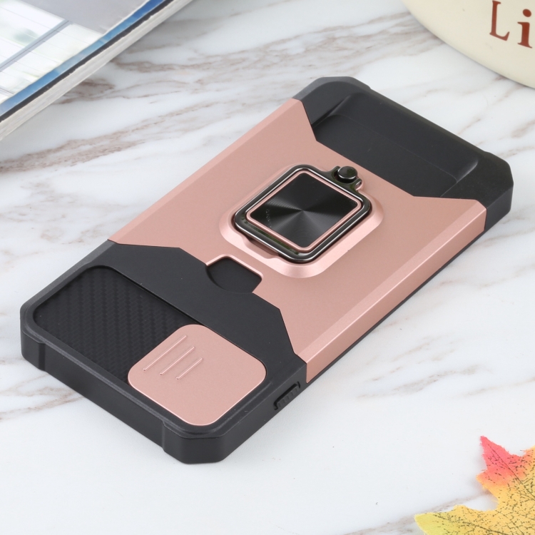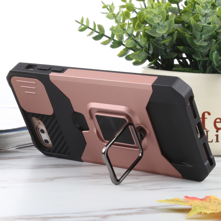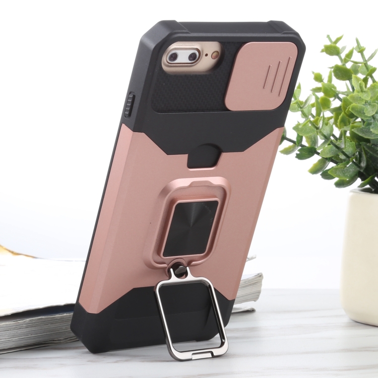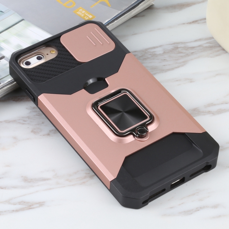 Funda para iPhone 8 Plus 7 Plus 6S Plus 6 Plus PC TPU con Soporte de Anillo Ranura Tarjeta (Oro Rosa)