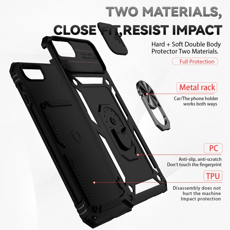 Caja del Teléfono Deslizante Soporte Camshield para iPhone 8 Plus 7 Plus 6 Plus (Negro)