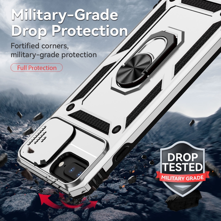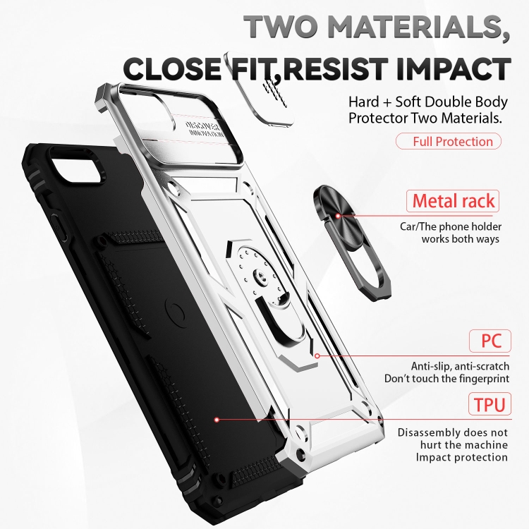 Caja del Teléfono Deslizante Soporte Camshield iPhone 8 Plus 7 Plus 6 Plus (Plata)