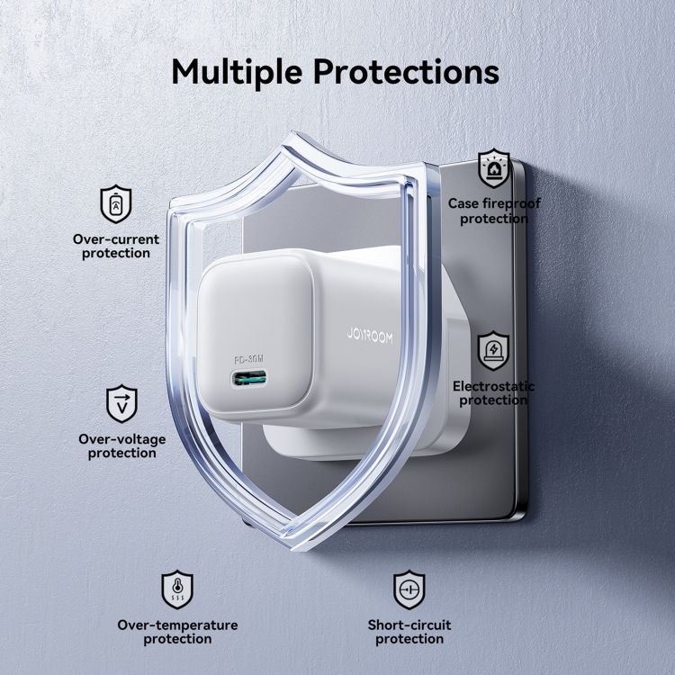 Cargador Mini Joyroom Jr-Tcg15 Puerto Usb-C Tipo-C Gan 30 W Enchufe Británico (Blanco)