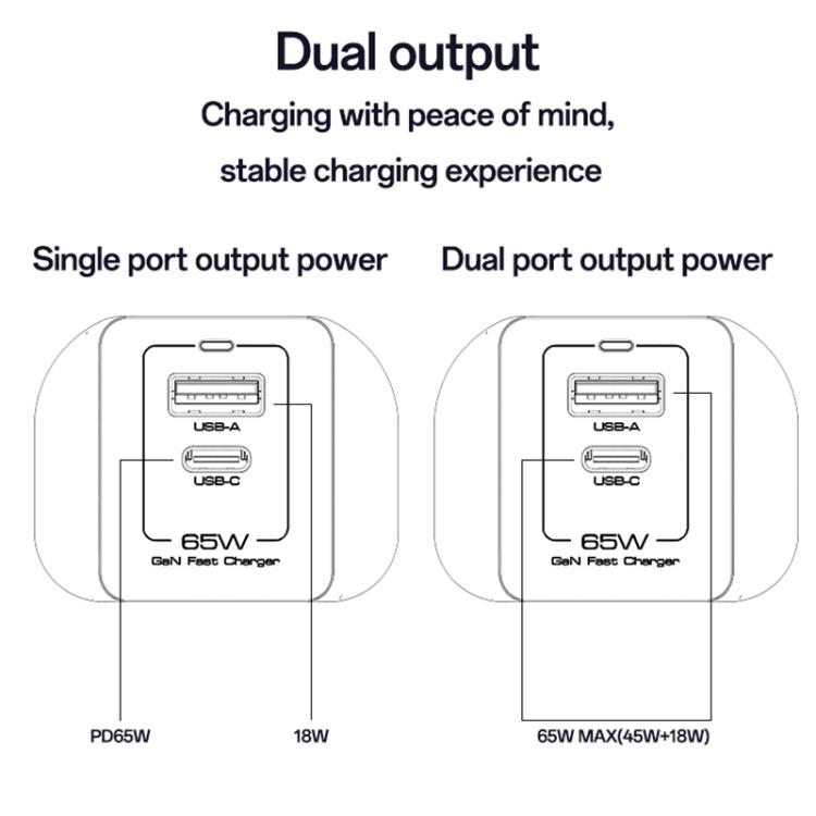 USB-C+USB-A: 45 W+18 W, potencia total 65 W (máx.)