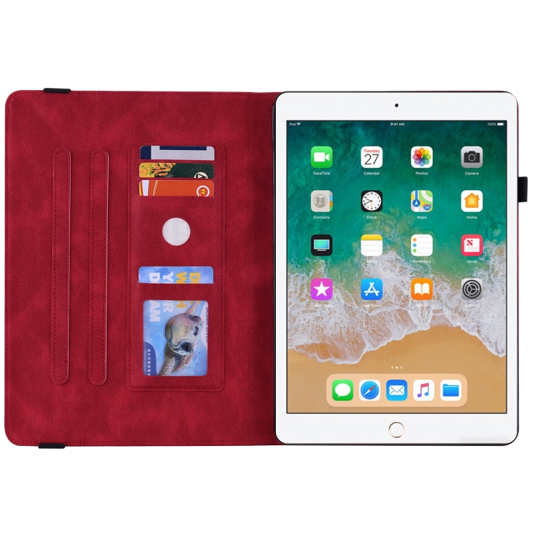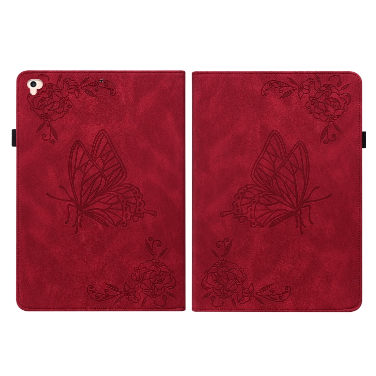 Case de Tableta de Cuero En Relieve de Mariposa para iPad 9.7 Pulgadas 2017/2018 (Rojo)