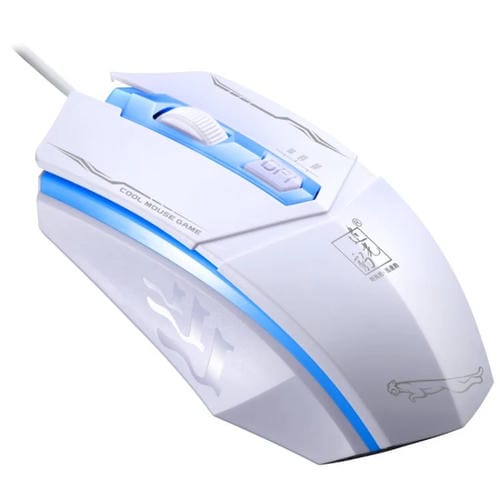 - 1x Ratón Óptico para Juegos Chasing Leopard 199 USB 1600Dpi con Cable 1,3 m y Retroiluminación Led Ajustable (Blanco)