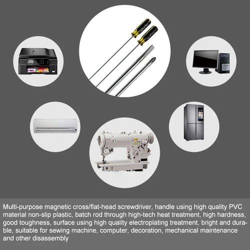 Chave de fenda estendida em forma de cruz magnética de 12 polegadas para reparação de máquinas de costura (Cruzado)