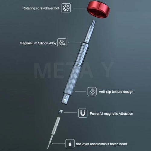 El destornillador magnético Mechanic Meta y Cross 1.8 es una herramienta especializada diseñada para la reparación precisa de Teléfonos Móviles. Fabricado con un mango de aleación de aluminio de aviación, ofrece ligereza y durabilidad, facilitando el manejo durante trabajos técnicos. Su broca tridimensional extra dura garantiza un ajuste perfecto y una fuerte adsorción magnética, lo que permite manipular tornillos pequeños con mayor seguridad y eficiencia. Este destornillador es compatible con una amplia variedad de modelos de Teléfonos, siendo ideal para usuarios que reparan por cuenta propia o profesionales del sector que requieren una herramienta confiable y ergonómica para intervenciones delicadas.