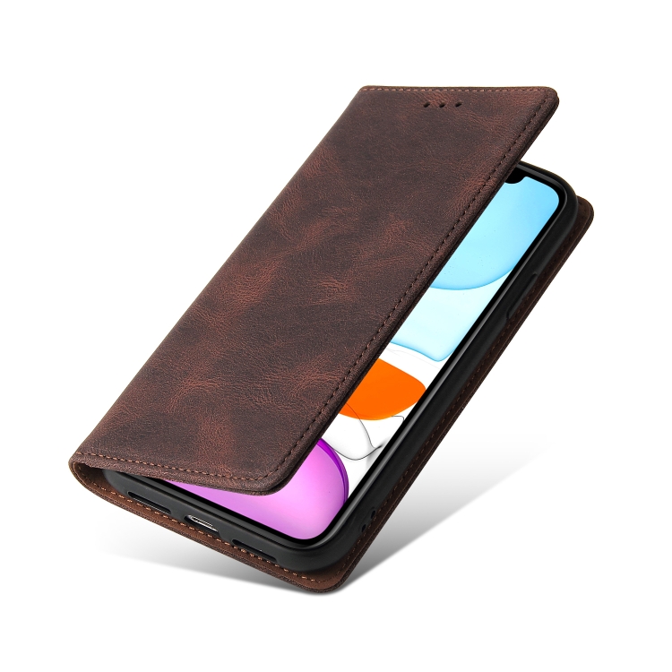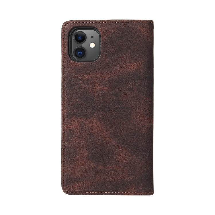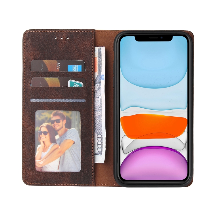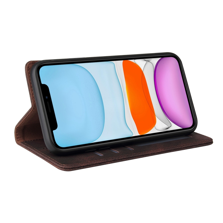 Funda de Cuero iPhone 11 Pro Max Cierre de Succión Horizontal Flip Soporte Tarjeta Billetera (Brown)