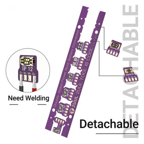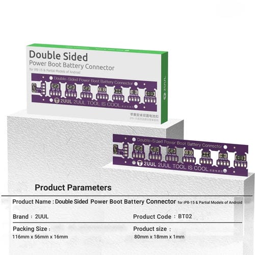 El Conector de Batería de arranque doble cara desmontable modelo 2UUL BT02 es un componente técnico diseñado para la reparación y mantenimiento de dispositivos Móviles, compatible con una amplia gama de modelos desde iPhone 8 hasta iPhone 15 Pro Max, así como con ciertos dispositivos Android. Su función principal es facilitar el arranque del dispositivo cuando la Batería presenta problemas de Conexión o no permite el Encendido normal, actuando como un puente temporal para pruebas y diagnósticos. Este Conector cuenta con un diseño de doble cara desmontable que requiere soldadura para su instalación, lo que lo hace adecuado para técnicos y usuarios con conocimientos avanzados en reparación de Móviles. Su tamaño compacto de 80 x 18 x 1 mm permite una integración precisa en el espacio interno del dispositivo sin afectar otros componentes.
